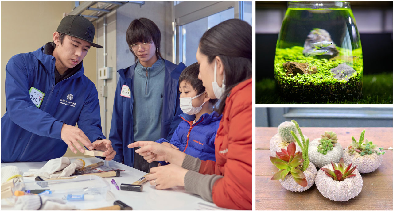 学生一人一人が考えた水槽・授業課題の展示や、 さまざまなワークショップの開催など、1年間の学びの成果を発表する場として本校のことを知る滅多にない機会となります。